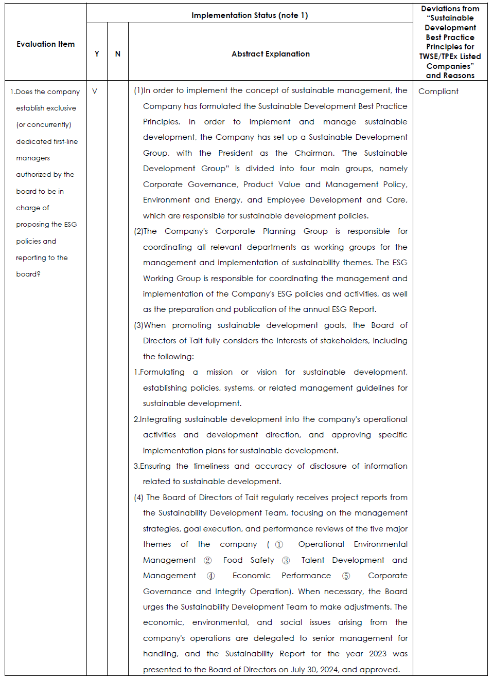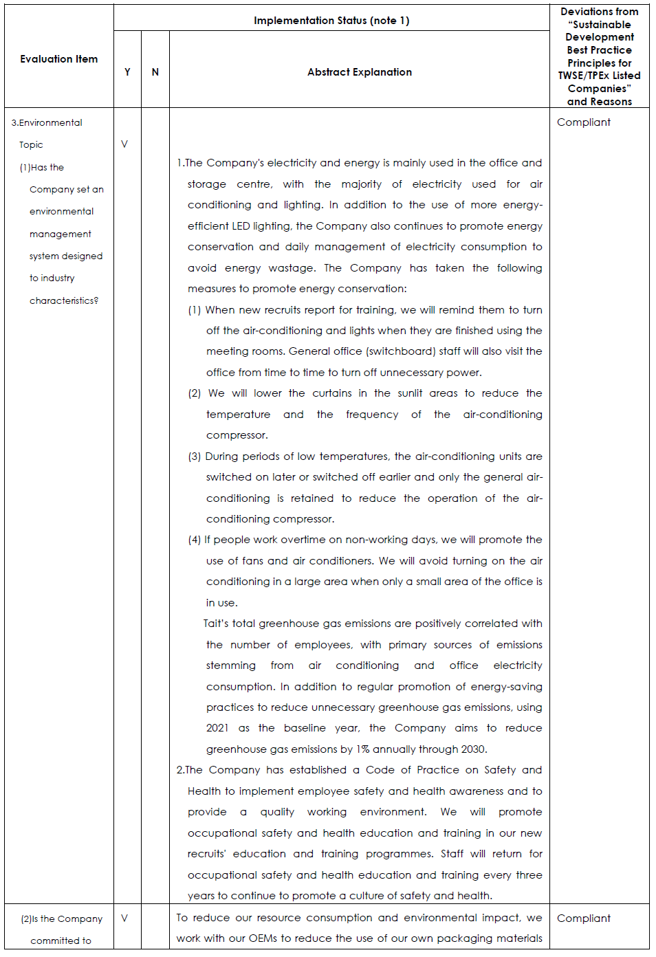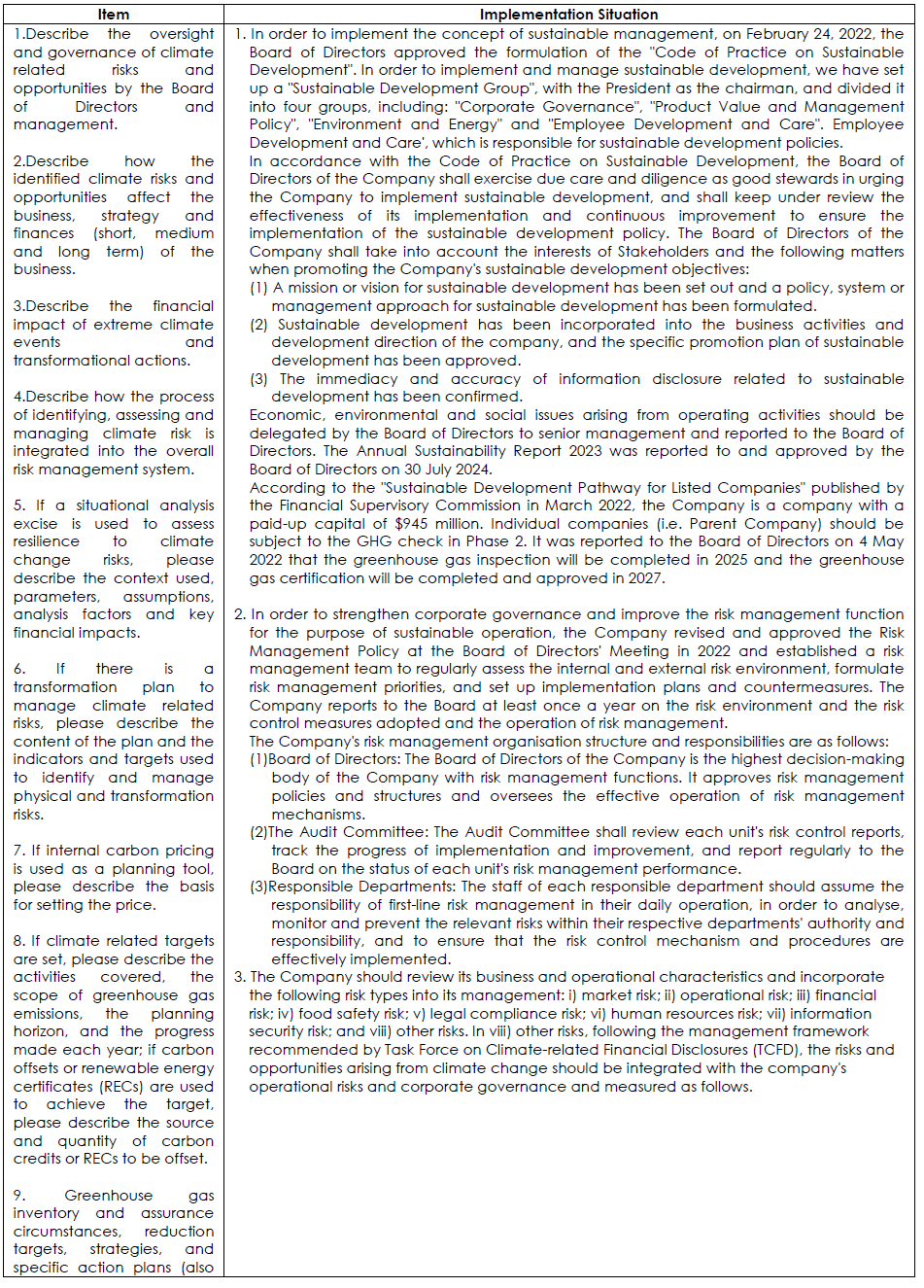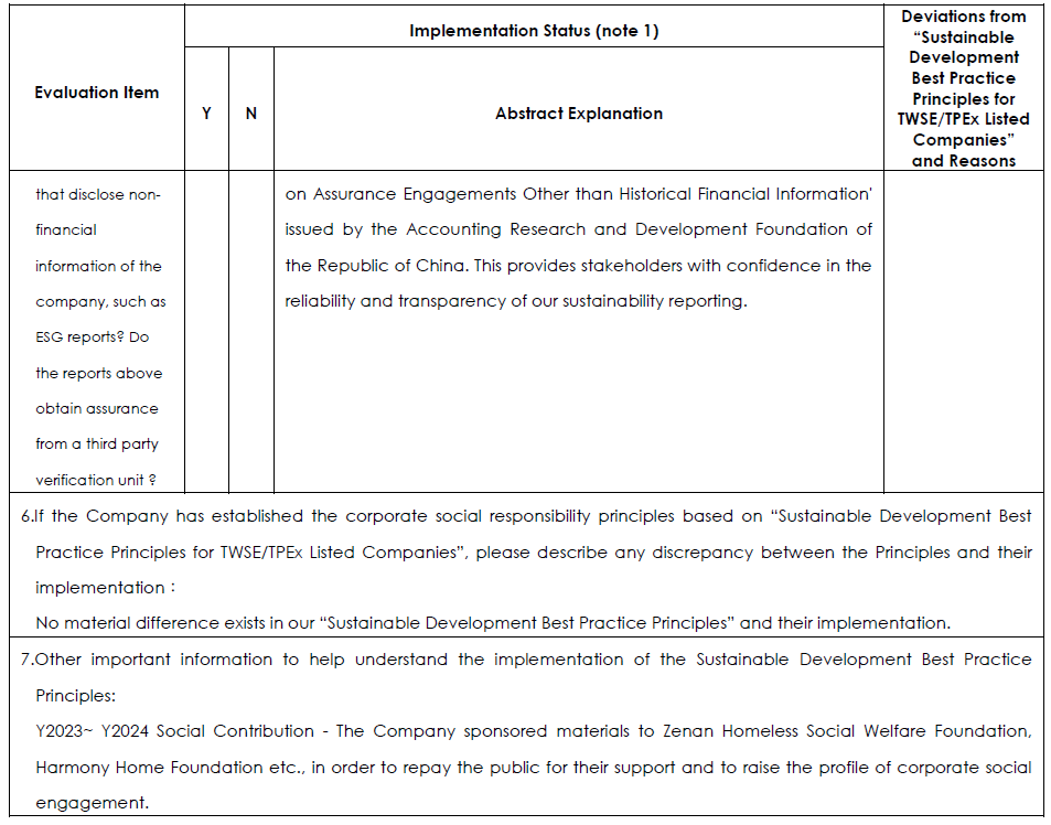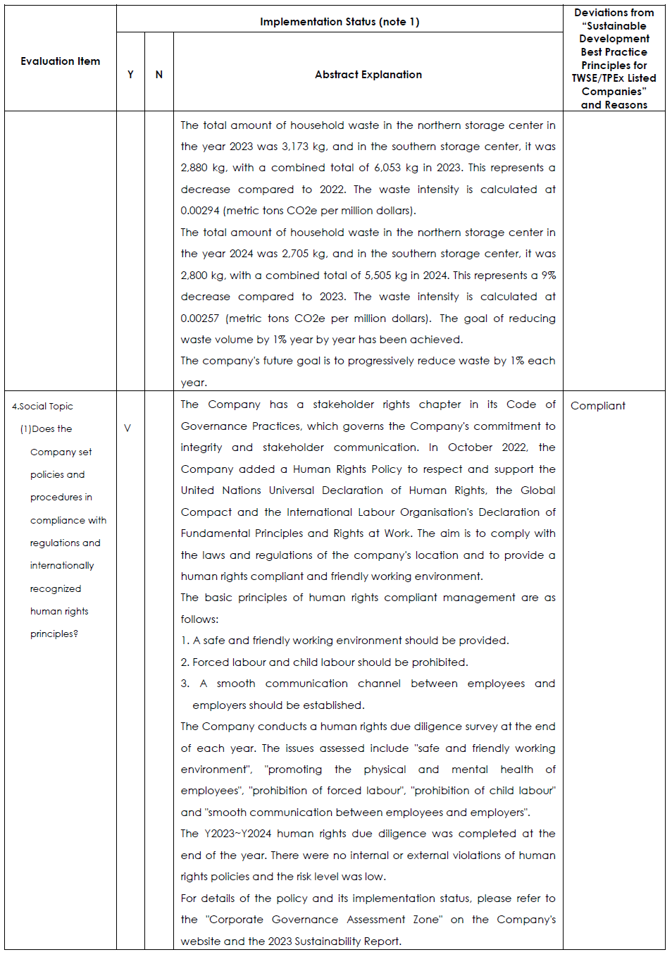 • Fulfillment of ESG and Deviations from the "Sustainable Development Best Practice Principles for TWSE/TPEx Listed Companies"