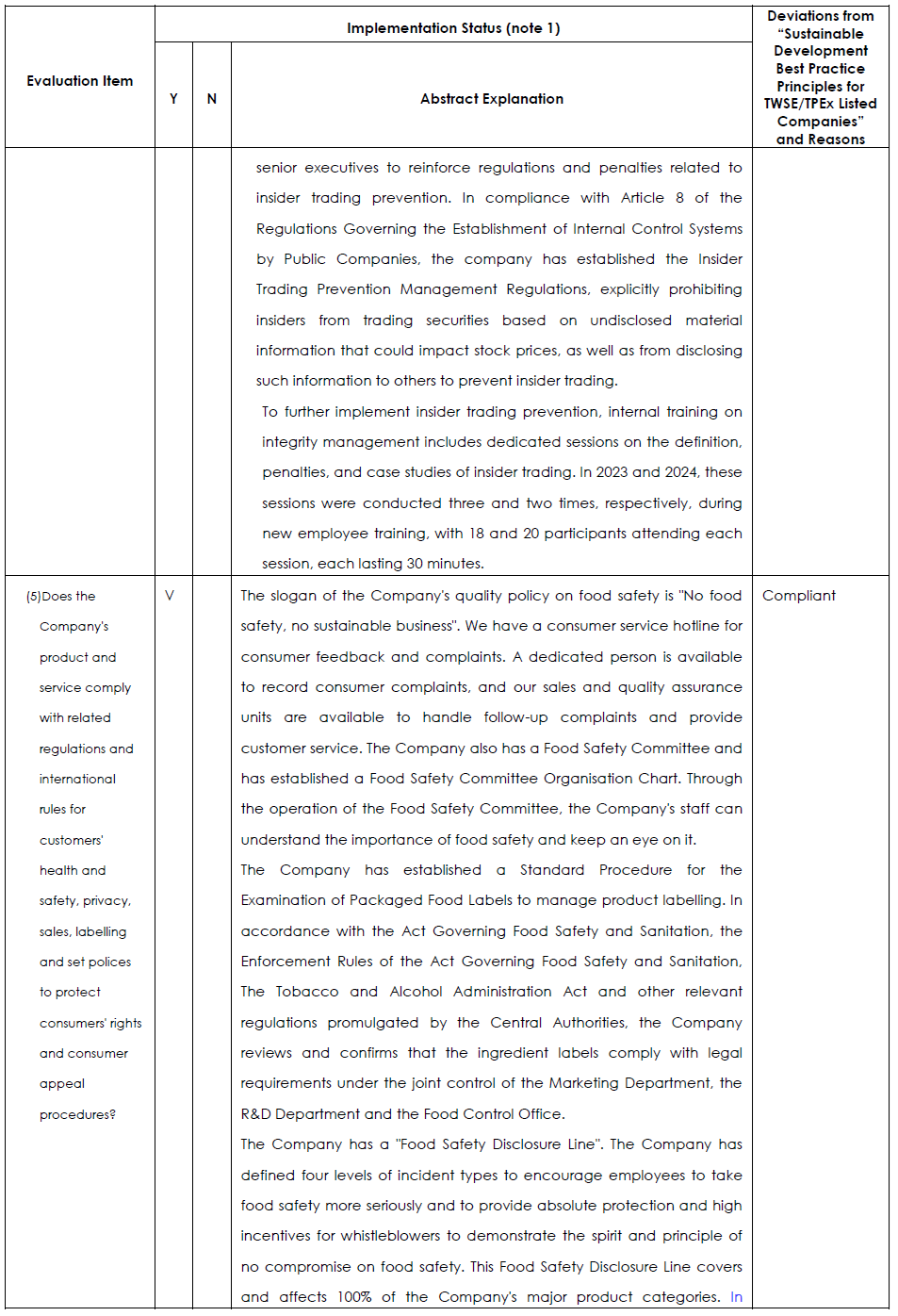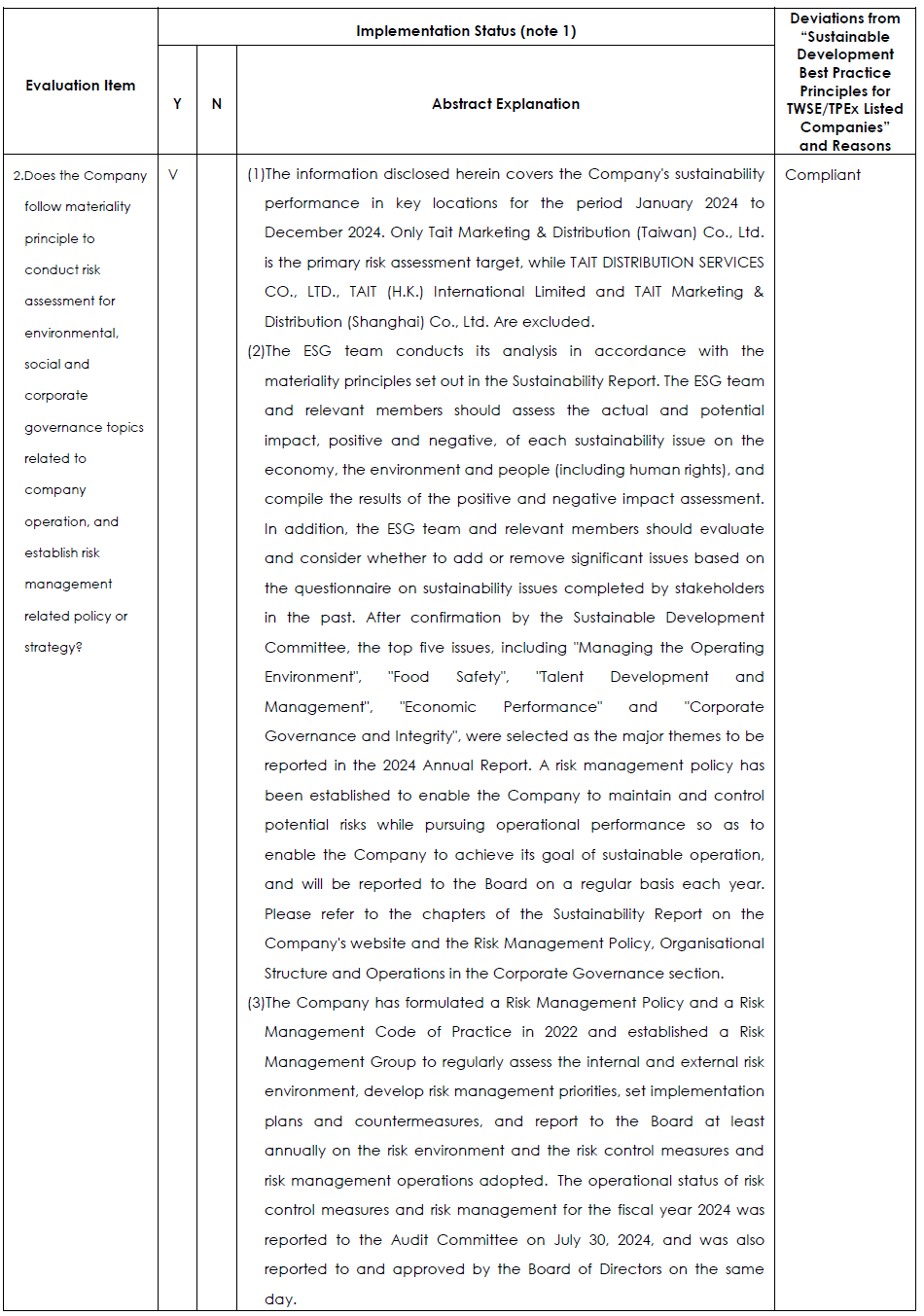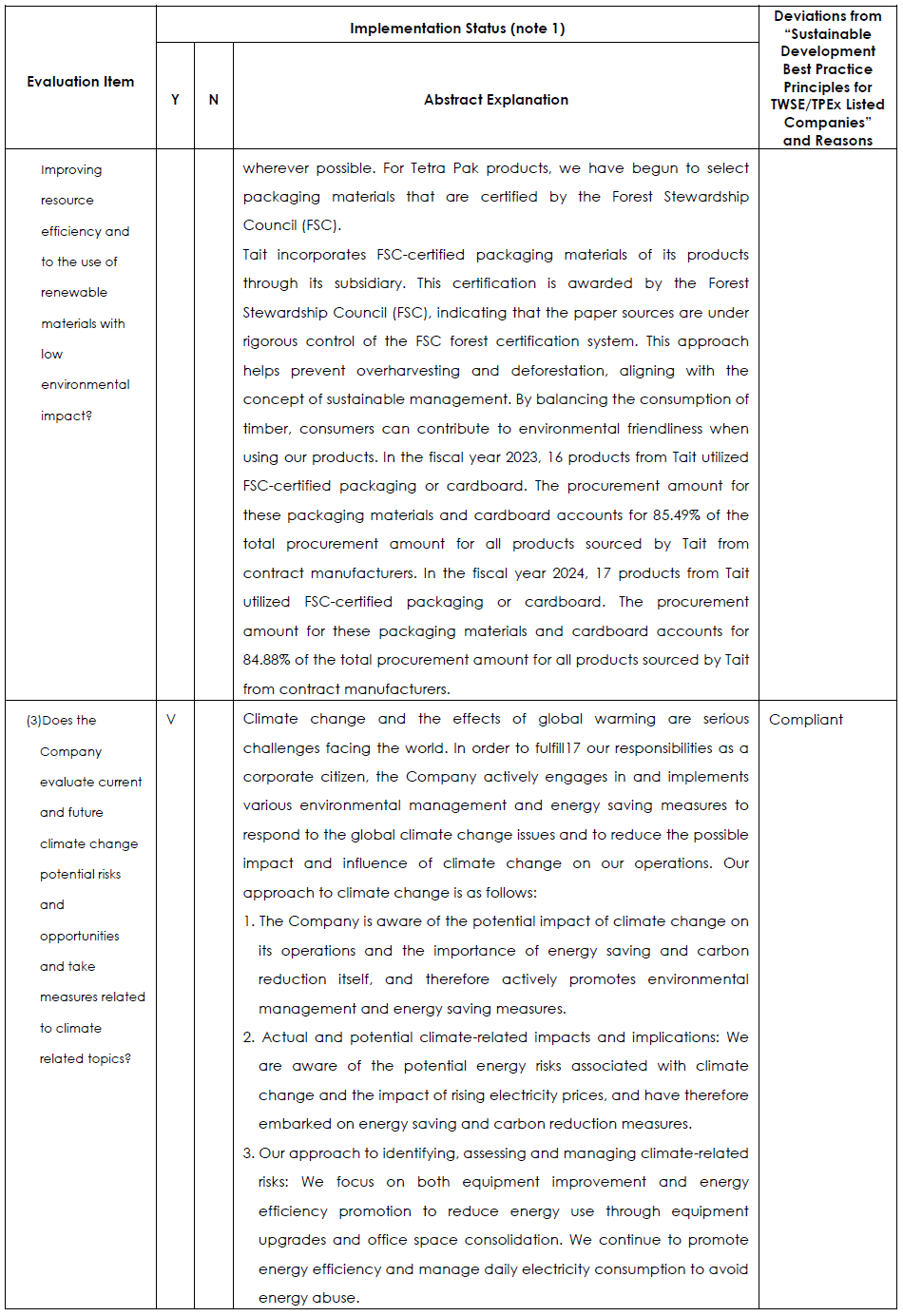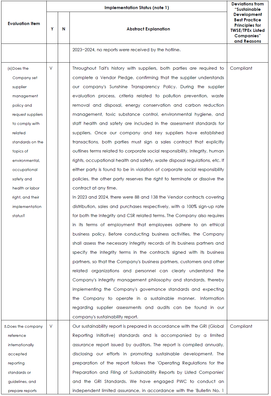 • Fulfillment of ESG and Deviations from the "Sustainable Development Best Practice Principles for TWSE/TPEx Listed Companies"