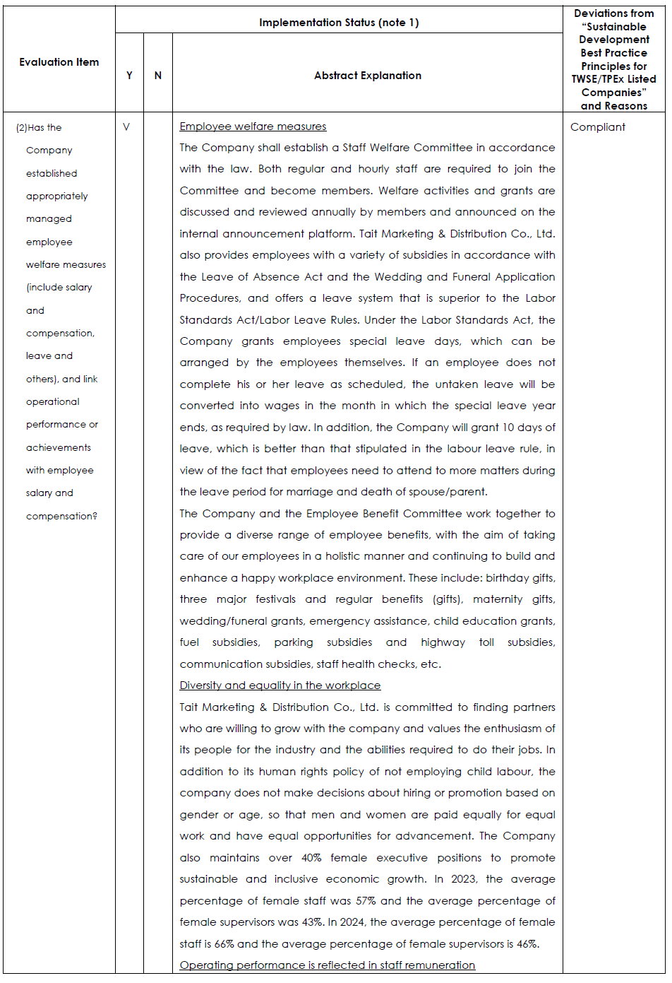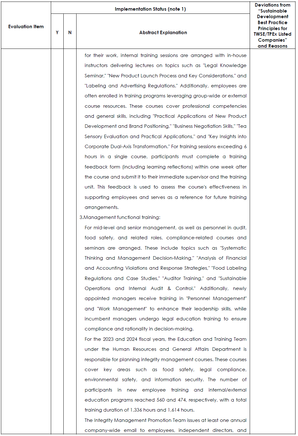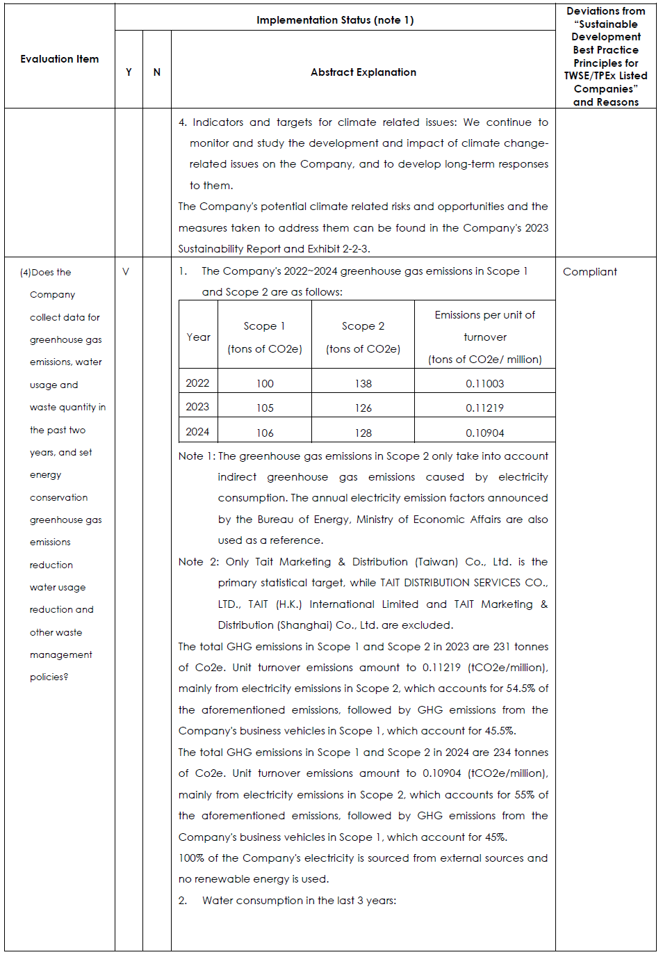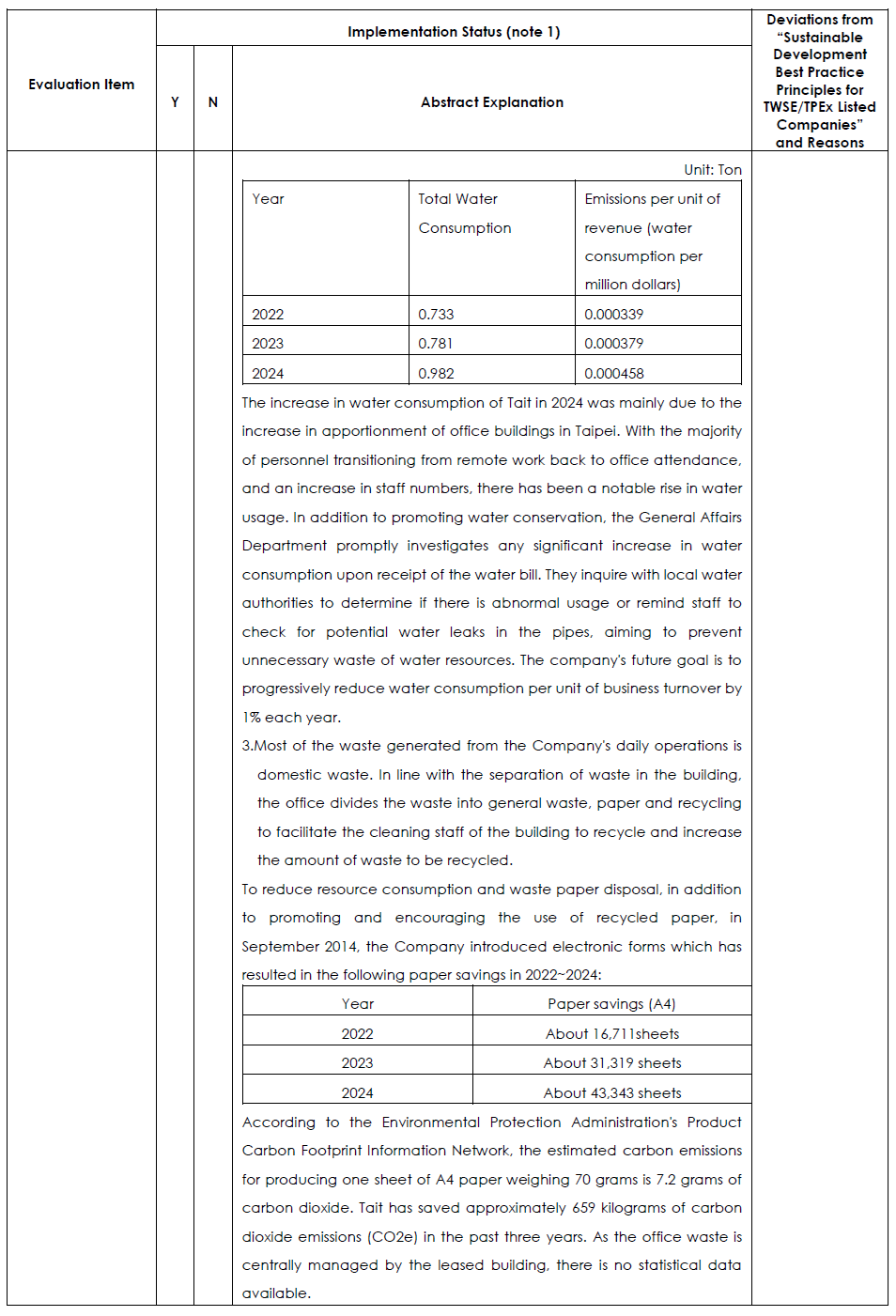 • Fulfillment of ESG and Deviations from the "Sustainable Development Best Practice Principles for TWSE/TPEx Listed Companies"