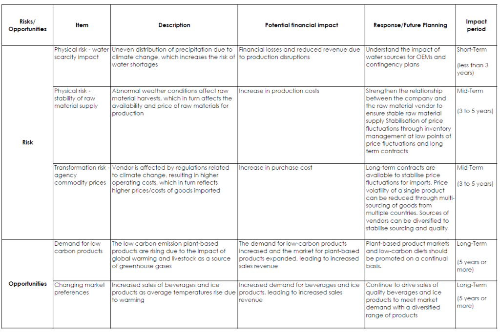 4-1-3)The management framework recommended by Task Force on Climate-related Financial Disclosures (TCFD), the risks and opportunities arising from climate change should be integrated with the company's operational risks and corporate governance and measured as follows.